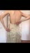 Shimmer in this elegant gold sleeveless dress, perfect for any special occasion. Fabric is a shimmery gold brocade style. Dress has deep low back with working zipper. Only marks to note are in inner lining bust area (pictured).