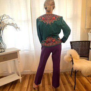 American Vintage Polyester Pants High Waist Wide Legs Retro 60s 70s Mod Purple