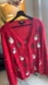 Charming red cardigan with playful snowman and tree designs. Perfect for festive occasions!