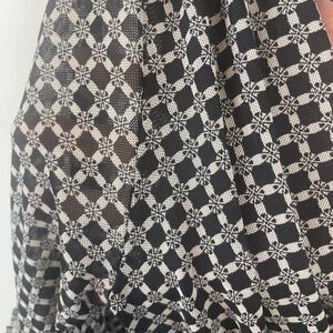 American Vintage Y2K 90s Mesh Max Studio 3/4 Sleeve Top Size XS/S Tunic Black White