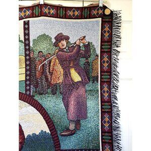 American Weavers Vintage Tapestry Blanket Golf Themed