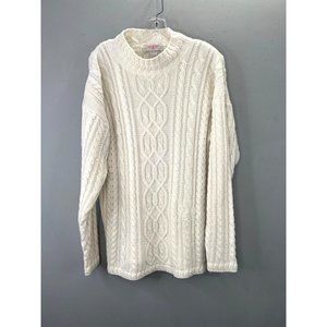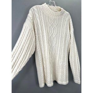 American Weekend Chunky Cable Knit Sweater size S Ivory Off White Mock Neck