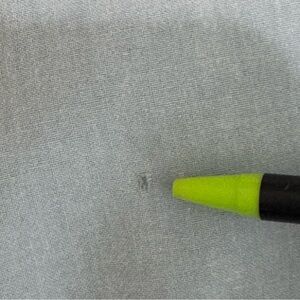 -no stains but has a teeny tiny start of a hole lower back the leg. The material is scuffed but not a completely see through hole.
