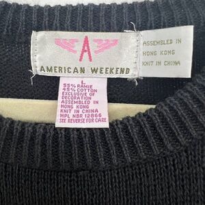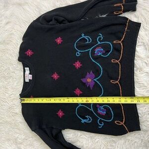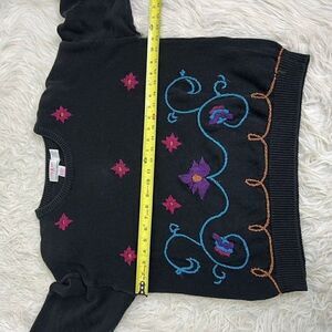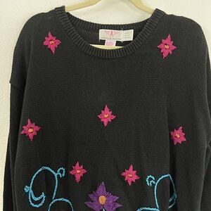 American Weekend Women’s Vintage 80s Black Knit Floral Embroidered Sweater Large