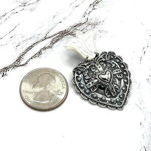American West 925 Sterling Silver Carved Mother of Pearl Heart Enhancer Pendant