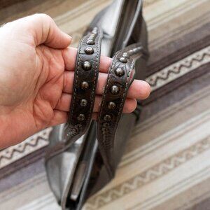 American West Bandana Tote Bronze Tooled Leather Tassels Studded Western