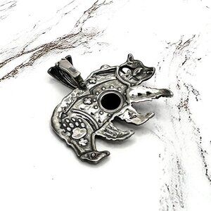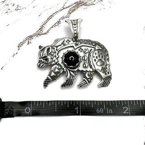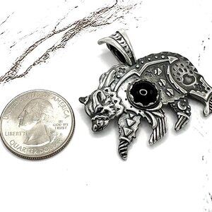 American West Black Agate Bear 925 Sterling Silver Enhancer Pendant