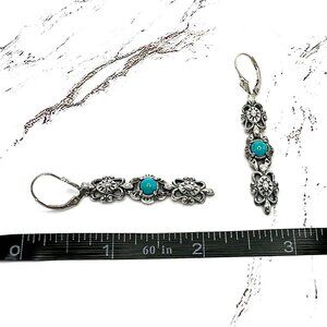 American West Blue Turquoise 925 Sterling Silver Concha Drop Earrings