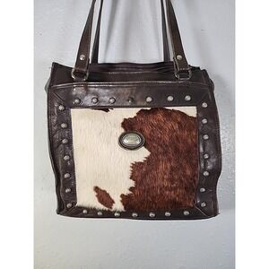 American West Vintage Leather Cowhide Brown Handbag Cross Body