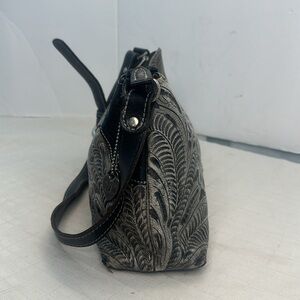 American West products will make you feel adventurous, free and proud that you own a handbag that is more than just another thing in your closet- It is a unique and beautiful piece of ART! The name American Weat recalls images of cowboys and new frontiers. This legacy has inspired American West's product line, the leaders in Western handbags and accessories for over 25 years. It is a legacy of QUALITY! Staying on trend and stylish is easy with this adorable large tote . Made of genuine leather, with native inspired decoration and tooling, handbag features comfortable organizational compartments and storage bag