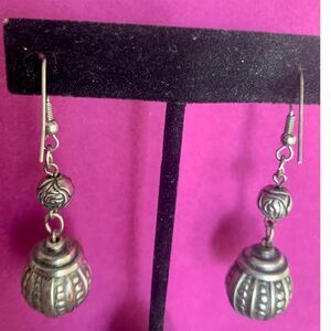 American West-style Rose pattern Dangle Earrings, Unmarked, Vintage