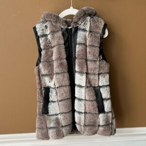 American Widgeon Faux Fur Girls Size 7 Vest with Leather Trim