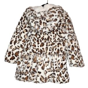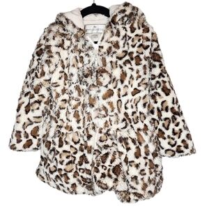 American Widgeon soft faux fur leopard print zip hooded coat.