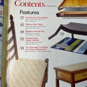 "American Woodworker Magazine Sep 2008 No 137" is a vintage issue featuring detailed instructions on resaw veneer tabletops. Published by a trusted brand in woodwork literature.