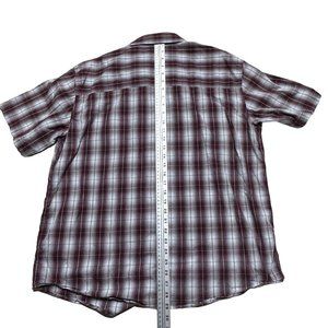 American Worker Shirt Mens Large Plaid Gray Burgundy Short Sleeve Casual