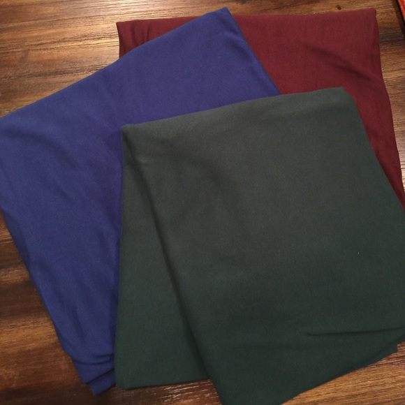 This listing is for all three (3) of these scarves pictured (maroon, blue and green). Lightly used. No stains or rips. Good condition. These retail for $28 each.