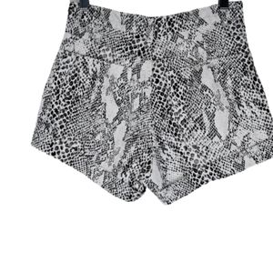 American apparel women's python print shorts black and white size 28 made in the USA. high waisted, front button closure and zip up, cuffed hemlines. two front pockets with one small, two back pockets. Measurements Approx: waist 13" across, inseam 1.5" rise 11". material 100% cotton. excellent condition like new. Comes from a smoke-free pet free home.