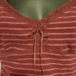 Very cute spaghetti strap tank top, with lace trim, cute tie detail and adjustable straps. With built-in bra