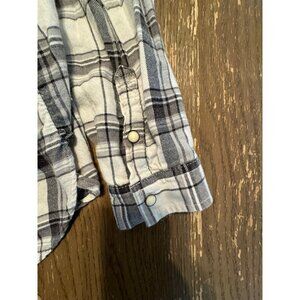 American eagle AE full snap button black white plaid flannel shirt top 90’s Y2K