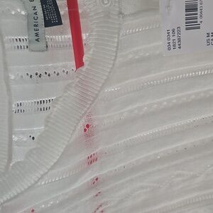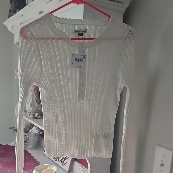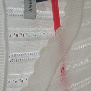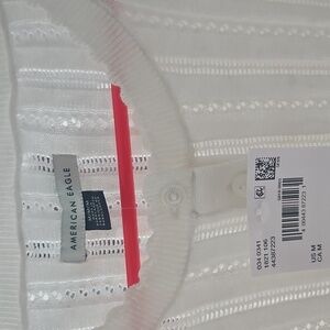 American eagle top cute little top sweater material does have a make up spot on the collar should wash out. Not full white kind of off.White in color.