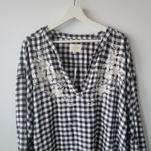 American eagle Top Womens size XL Gingham Popover Gingham Floral Embroidered