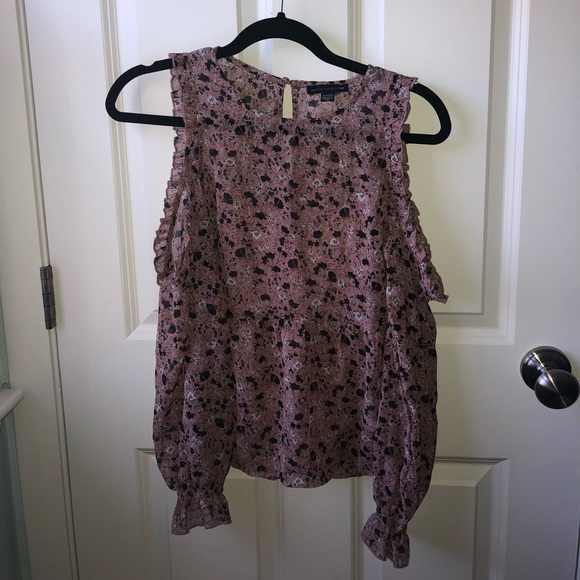 American eagle floral long sleeve blouse with cutout shoulder detail, has removable tank top inside