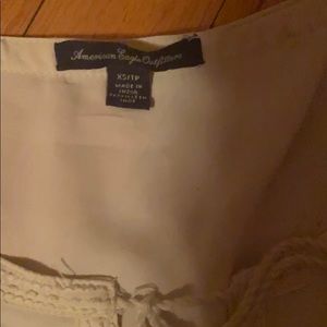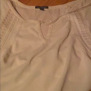 Cream white blouse. Has beautiful embroidery and a tie in the front. Can be dressed up or down
