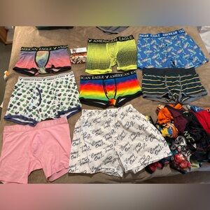 Variety pack of American Eagle boxer briefs. Elastic branded waistbands. Stretchy, breathable fabric. Multiple patterns and solid colors. Great for daily wear.