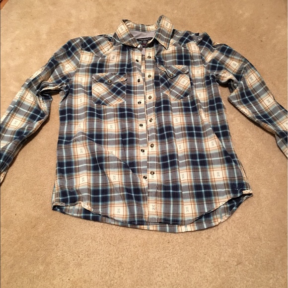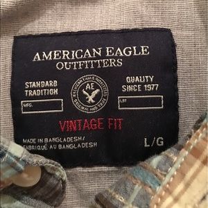 Large American eagle button down. Light blue, navy and tanish color. Great condition.