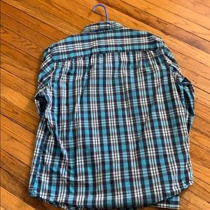 Slightly used blue and white plaid parent American Eagle button down athletic fit