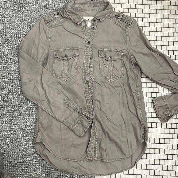 Super cute American eagle button down shirt. Lots of button details! Beige color. Great dresses down or or up!