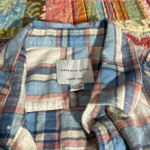 American eagle super soft button down. Size medium. Blue and light pink/peach. No holes or stains.