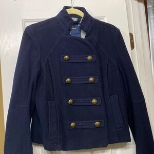 NWOT American eagle coat. Navy wool outside and lined striped inside.