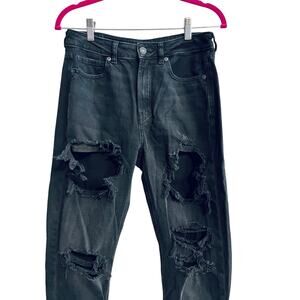 AE cutout distressed jeans. High rise. Dark grey wash. Size 6