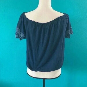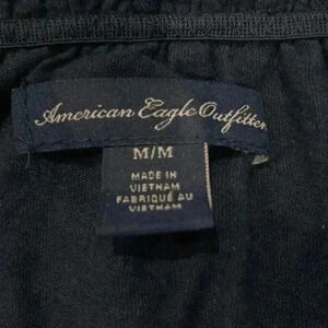 American eagle dark blue top in size medium. Has elastic top and waist. This can be worn off the shoulder. Has cute embroidered sleeves.