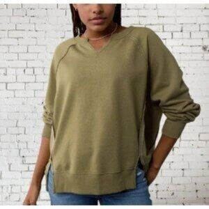 American eagle extremely soft lived in oversized crewneck sweatshirt. Size XS but runs big, could fit up to a medium see measurements! Soft, lived in feed. Cozy and comfortable, like new condition! Exposed seams and side slits. Very oversized, cotton blend.