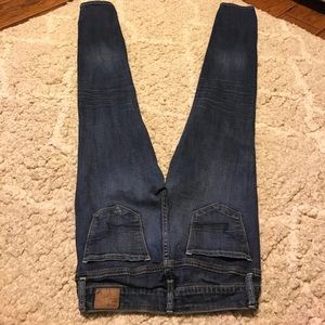 Like new. Great condition. No rips or tears. No signs of wear at all. Wife never wears them. Size "stretch" skinny 2 long. Faded fronts around knees style.