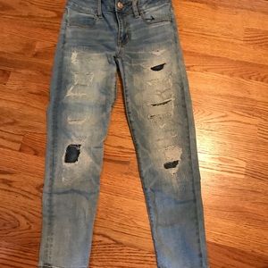 American eagle cropped super stretch skinny jeans with patches. In great condition.