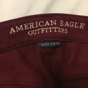 Burgundy American Eagle Jeans. Never worn, perfect condition. Super stretch skinny jegging