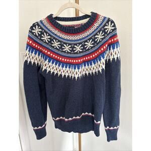 American eagle men’s fair isle Nordic printed crew neck sweater blue medium