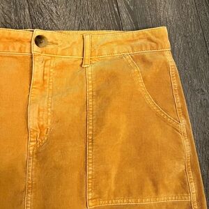 American eagle mustard yellow colored mini skirt. Corduroy material. Zipper and button fly. Belt loops. Front and back pockets. Excellent condition. Womens size 16.