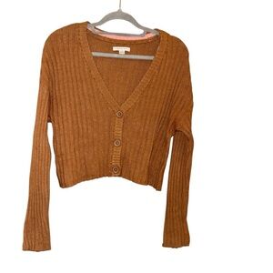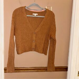 American eagle ribbed cropped boxy button up cardigan brown size small