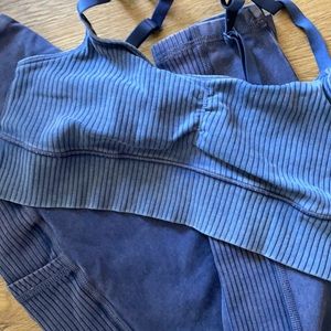 Bra is more faded from wearing more. Leggings worn a handful of times