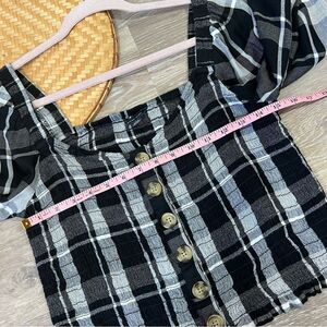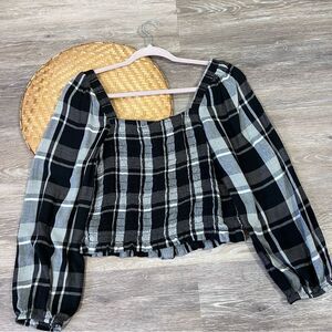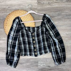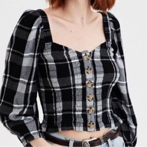 American eagle smocked balloon sleeve button front top