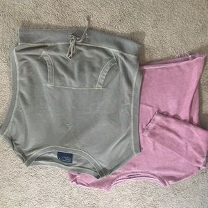 2 sweat shirts, pink 3/4 sleeves, green sleeveless both size small