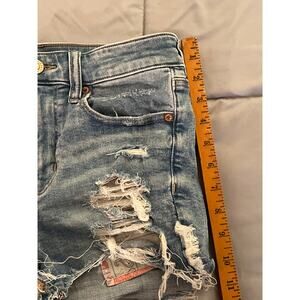 American eagle stretchy distressed light wash denim with paisley pockets size 6
