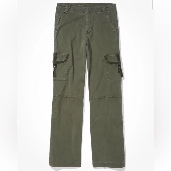 American eagle super high-rise baggy wide leg cargo pants women’s 6 short olive