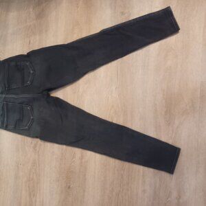 Black super stretch jeans with a thin black stripe down the side, size 10