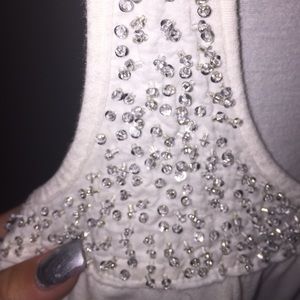 Only worn once! It just has sat in my closet for the past year. It's a creamy-white color and the jewels at the top are all on perfectly