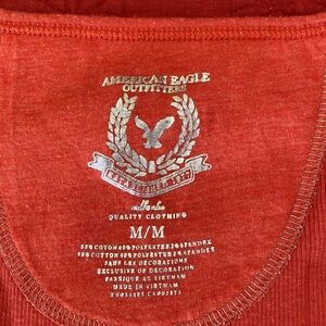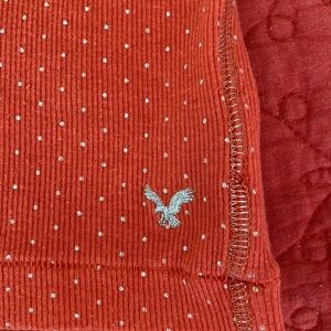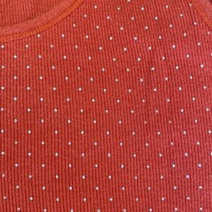 Burnt orange American Eagle tank top. White polka dots almost look to have a silver/ grey tint to them. Nice outside stitch detail for the side seams